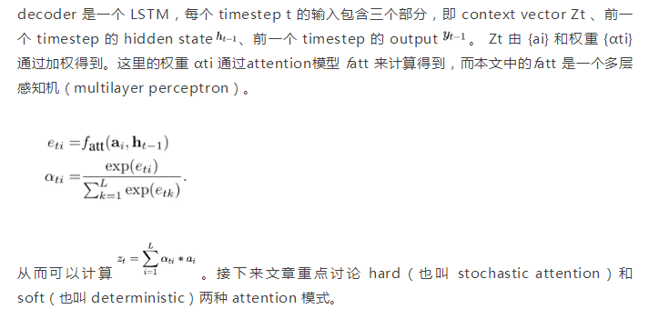 文章提出了两种 attention 模式,即 hard attention 和 soft attention,来感受一下这两种 attention。
