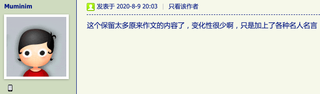纵观全文,与浙江高考的满分作文结构相近。网友表示,「这个保留了太多原作文的内容了,变化性少,只是加上了一些名人名言。」