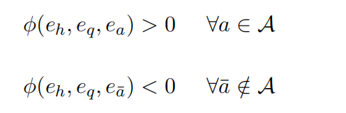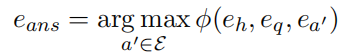 对于每个问题,将使用所有候选答案实体计算分数φ(.)。通过最小化分数sigmoid与目标标签之间的二进制交叉熵loss来学习模型,其中正确答案标签为1,否则为0。