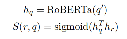 其中是问题和关系的embedding,在所有关系中,选择得分大于0.5的那些关系。将其表示为集合