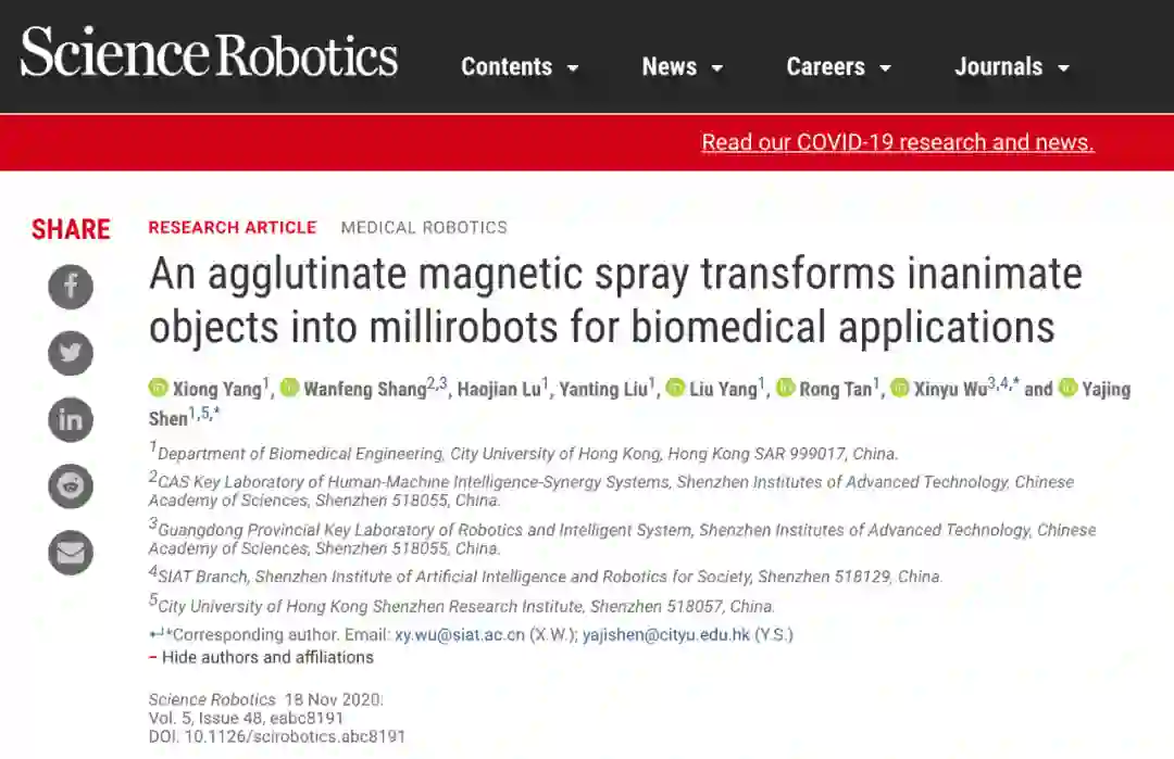” 为题,于 11 月 19 日在线发表在科学杂志《科学机器人》(
