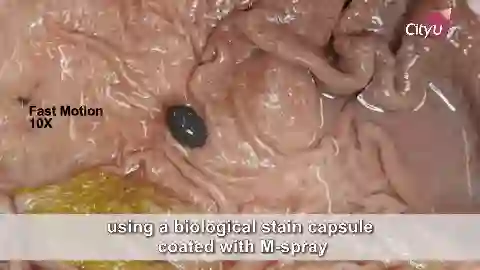为了进一步验证 M-spray 毫米级机器人的可行性和有效性,研究人员用涂有 M-spray 的胶囊在兔子体内进行了试验。