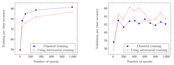 另外从训练过程中的性能上也可以看出,使用对抗训练,降低了过度拟合。