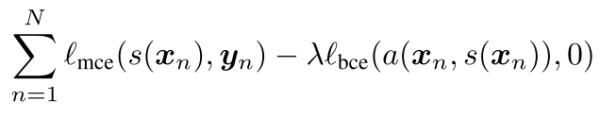 是分割结果。上式第一项是经典的分割模型的代价函数,例如交叉熵(cross entropy)即概率值的负对数。第二项和第三项是对抗模型的代价函数,由于希望对抗模型尽可能难以判别