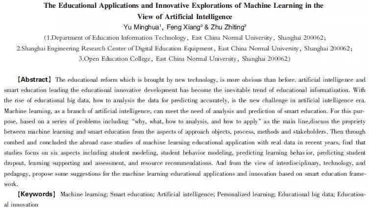 关键词:机器学习;智慧教育;人工智能;个性化学习;教育大数据;教育创新