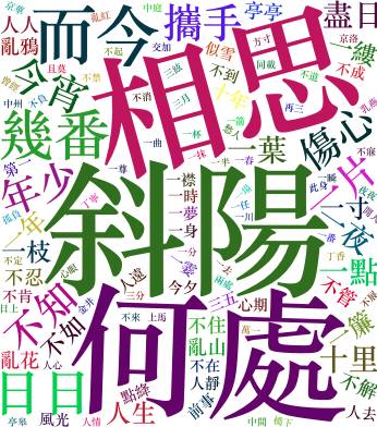 两个字的词语中,『何处』,『斜阳』,『相思』这些词使用频率最多,给我一种在看网络小说标题的感觉。