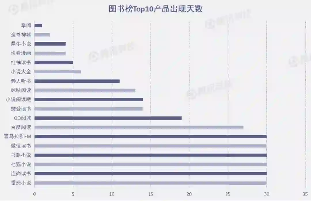 此外,七猫小说、番茄小说和连尚读书 3 款产品轮流霸榜图书榜第 1 名:
