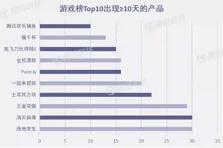 绝地求生和消灭病毒连续 30 天位列游戏榜 Top10。