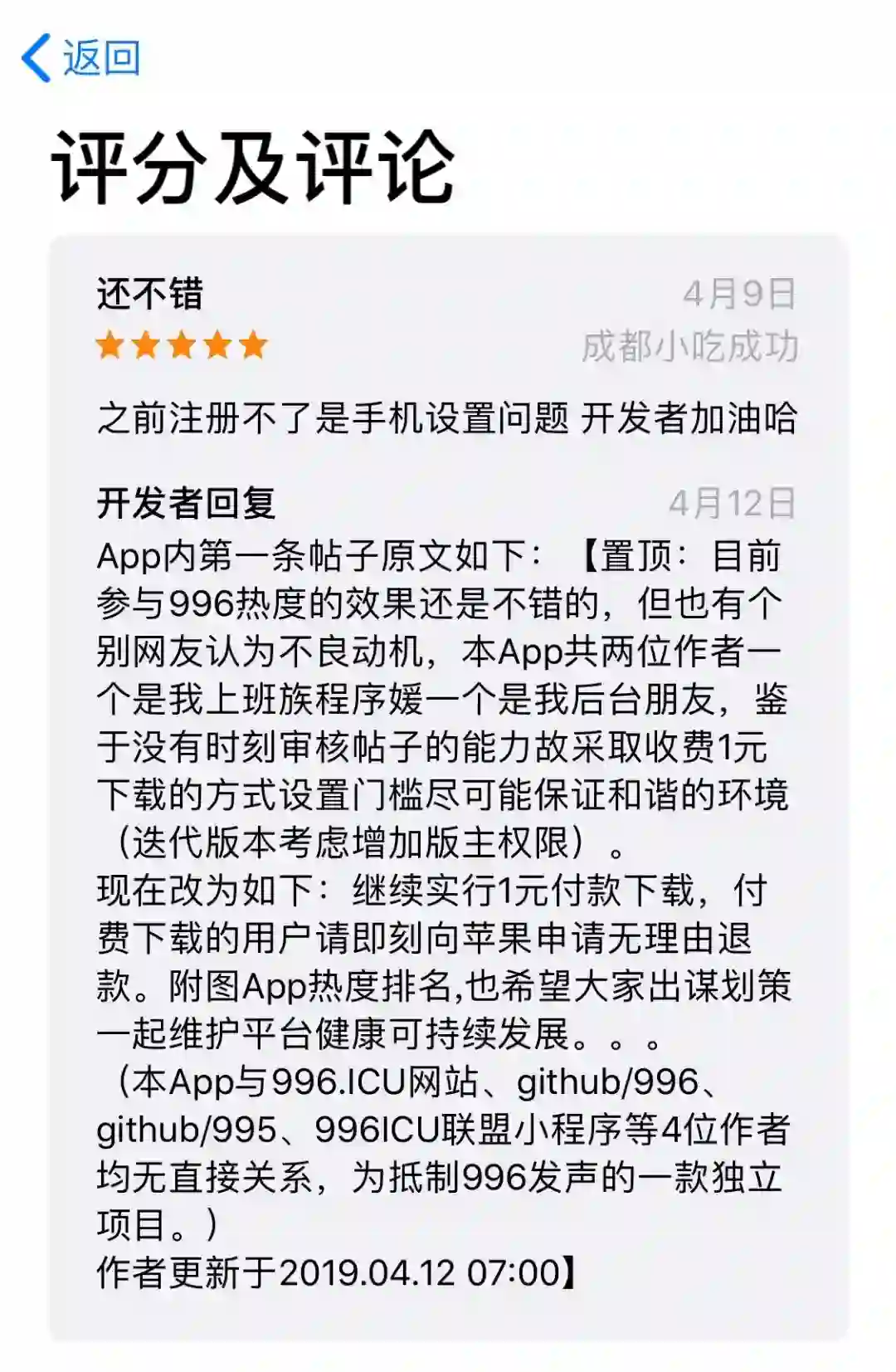 根据 App Store 上开发者阐述,该款产品与代码托管平台 GitHub 上的“996.ICU”项目并无关联,是一款独立的职场社区项目。