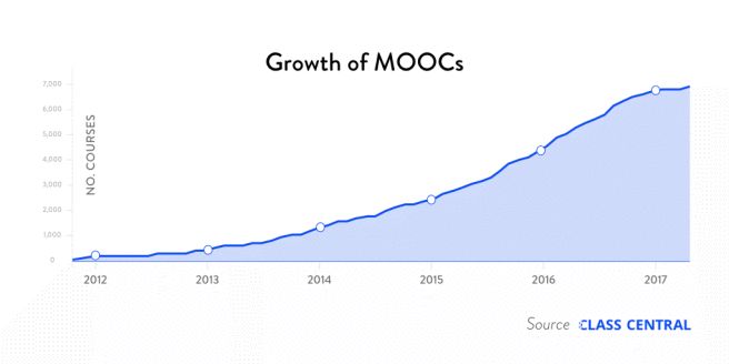 另一方面,我不确定为什么2017年的走势看起来趋于平稳。至少2016年之前,上升趋势看起来相当稳定。可就算慕课的发展已经达到饱和,这样的统计数据也是相当惊人的了。