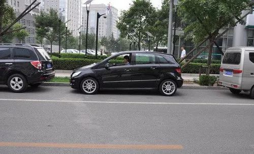 1.将汽车开到停车位的前面,停在前面一辆车的旁边。