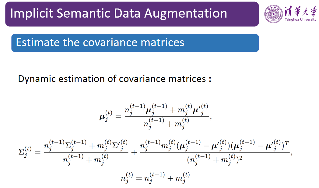 为了在训练过程中快速计算方差,黄高博士团队设计了一种在线迭代的计算公式,每当接收一个 mini-batch 的输入数据,我们都会在特征空间中计算出其特征向量,用该向量更新每一类的方差矩阵,最终得到样本的均值和方差。通常,这里的方差矩阵规模不会很大。
