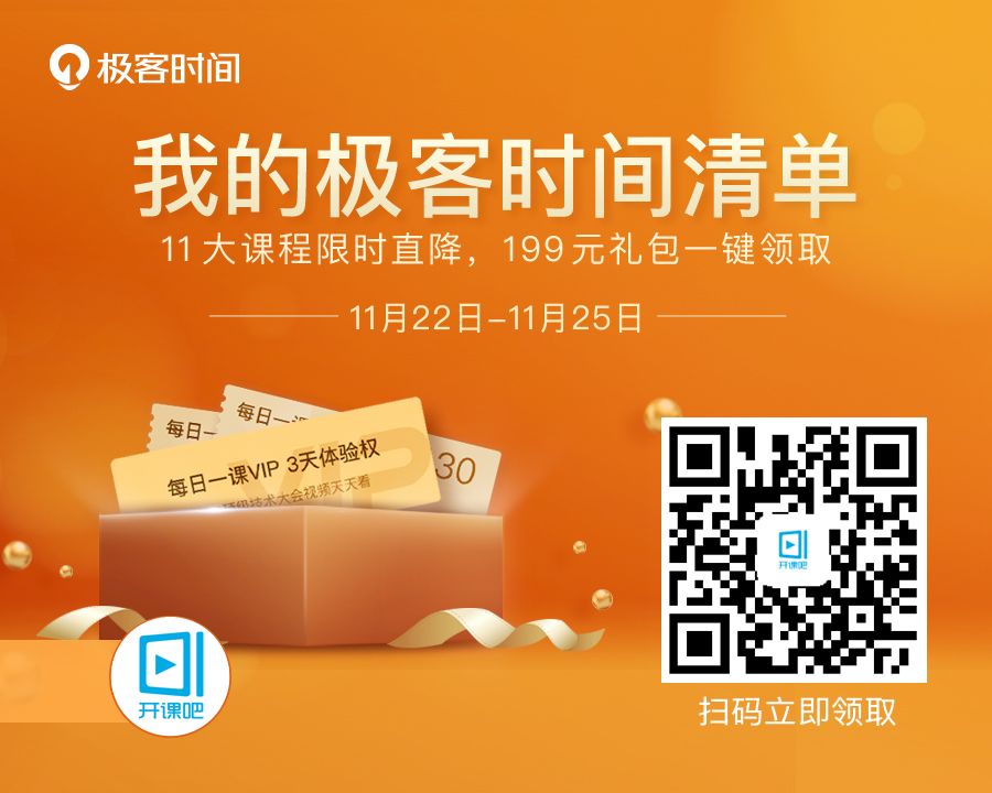一定先扫码领取总价值 ¥ 199 礼包,再进行购买保证最低价订阅。极客时间app上都没有领券通道!