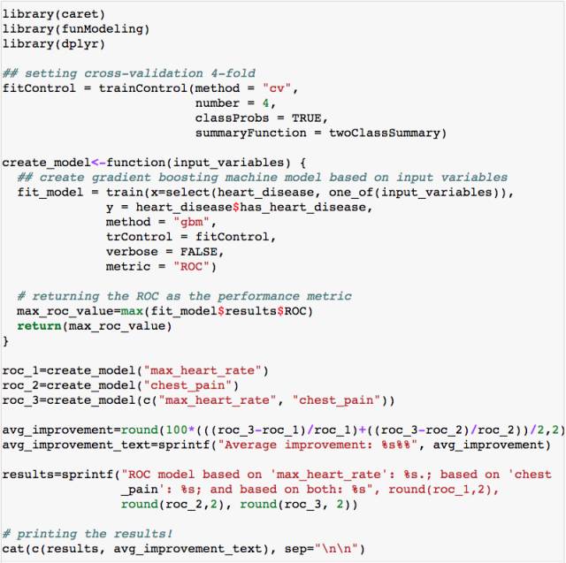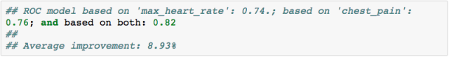 基于heart_disease数据做出的R语言示例显示在考虑两个变量时预测成功率平均提高了9%而不是太差。😉这个改进的百分比是变量分组工作的成果。