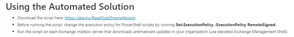 在您的组织中每个下载反恶意软件更新的Exchange邮箱服务器上运行该脚本(使用提升的Exchange管理壳)