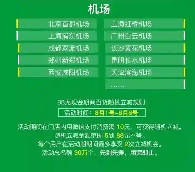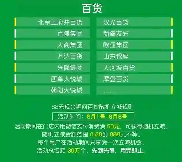 从8月1日开始积累鼓励金,一直到8月8日当天一次享受优惠,同时活动当天也会有“消费随机立减”。到8月8日之后,活动还会继续,依然可获得鼓励金,在今后的1个月内陆续兑现。