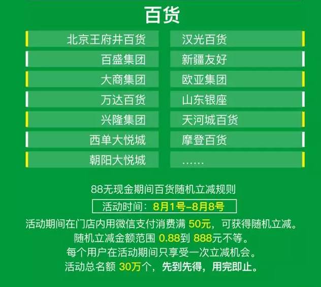 从8月1日开始在整个8月,微信都会投入巨额资金以鼓励金、代金券和现金红包等渠道推动支付。
