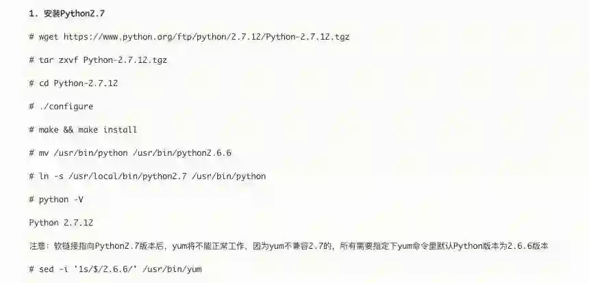操作系统采用CentOS6.5,默认安装了Python2.6.6,那我们升级到Python2.7最新版Python2.7.12