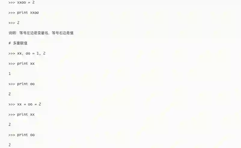 上面打印时就是在引用变量了,可见Python引用变量不用加$什么特殊字符,不像Shell、PHP那样,还要加$。