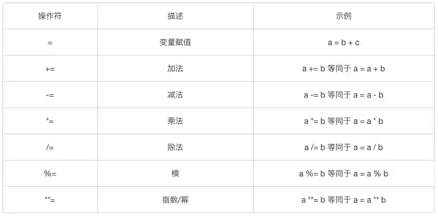 赋值操作符,操作符左边运算右边,然后将结果赋值给操作符左边。