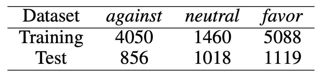 neutral类别的结果。我们采用favor和against两类的宏平均和微平均F1值作为评价指标。另外我们也提供了所有标签的accuracy作为各模型对比的参考指标。