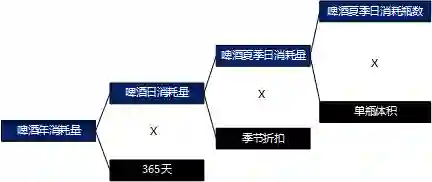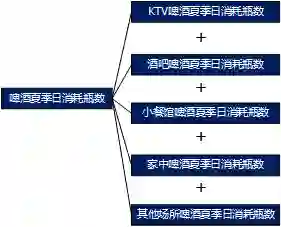 现在来拆解啤酒夏季日消耗量,我能想到的主要消费场所是:KTV、酒吧、小餐馆和个人家中。这些场所也是互相独立的,为了不漏,必须加上个“其他场所”。