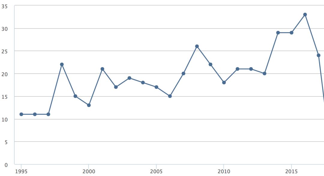 图:曹雪涛院士历年发表的高水平论文篇数