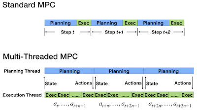 在标准 MPC 中,控制器在每个时间步上规划一系列动作,并且仅执行规划的第一个动作。利用从机器人到控制器的定期反馈来执行在线重新规划,让控制器能够针对模型的不准确保持稳定性,但同时这也给动作规划器带来了挑战,因为必须要在控制回路的下一步骤之前完成学习(对于腿足式机器人,往往只有不到 10 毫秒的时间)。