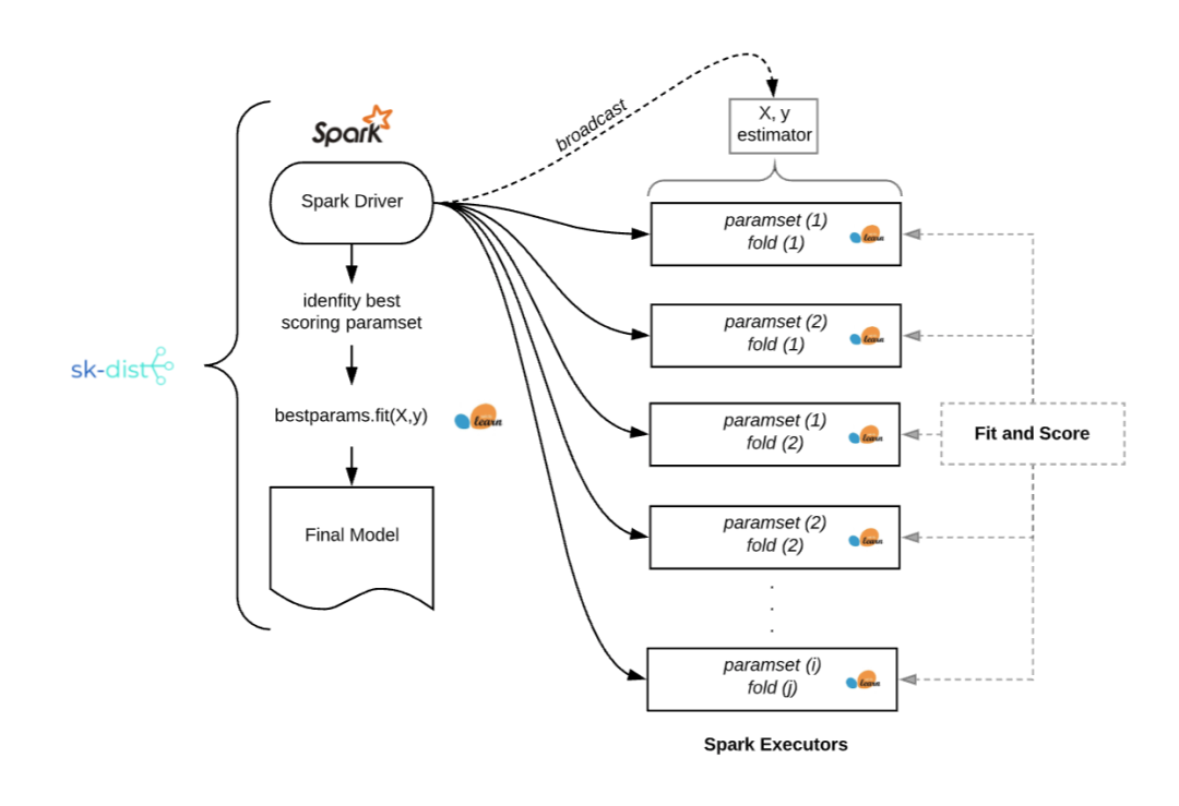import timefrom sklearn import datasets, svmfrom skdist.distribute.search import DistGridSearchCVfrom pyspark.sql import SparkSession# instantiate spark sessionspark = ( SparkSession .builder .getOrCreate() )sc = spark.sparkContext# the digits datasetdigits = datasets.load_digits()X = digits["data"]y = digits["target"]# create a classifier: a support vector classifierclassifier = svm.SVC()param_grid = { "C": [0.01, 0.01, 0.1, 1.0, 10.0, 20.0, 50.0], "gamma": ["scale", "auto", 0.001, 0.01, 0.1], "kernel": ["rbf", "poly", "sigmoid"] }scoring = "f1_weighted"cv = 10# hyperparameter optimizationstart = time.time()model = DistGridSearchCV( classifier, param_grid, sc=sc, cv=cv, scoring=scoring, verbose=True )model.fit(X,y)print("Train time: {0}".format(time.time() - start))print("Best score: {0}".format(model.best_score_))------------------------------Spark context found; running with sparkFitting 10 folds for each of 105 candidates, totalling 1050 fitsTrain time: 3.380601406097412Best score: 0.981450024203508