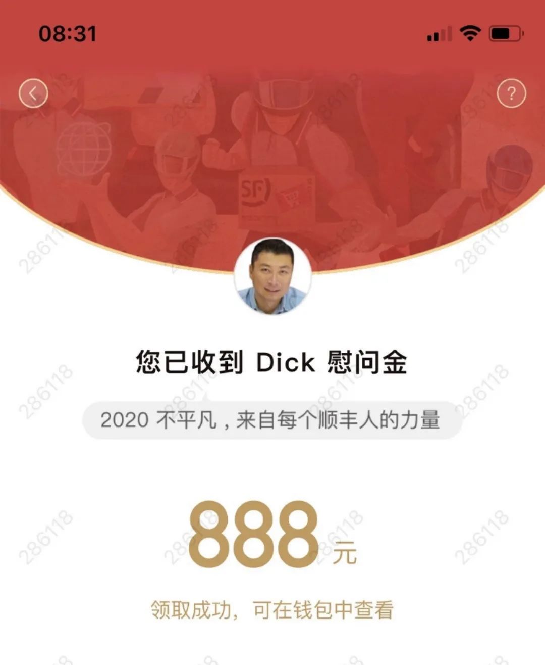 顺丰总裁王卫发出5亿红包,顺丰所有员工收到888元红包