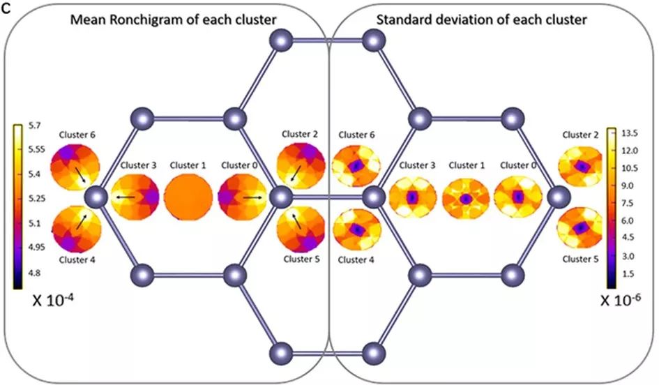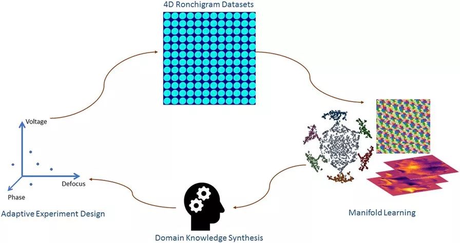 由美国橡树岭国家实验室的Sergei V. Kalinin(本刊副主编)领导的国际团队,使用计算机协议进行数据分析(他们将该方法称为多维学习,manifoold learning),通过电子束照射石墨烯的超薄层来收集大量图像中的周期性特征,然后由计算机自动将这些特征与原子相对位置有关的信息链接。稍具体来说,他们采用数据驱动的多维学习方法,对4D-STEM数据集进行直观的可视化和探索分析,从像素化探测器上记录的具有单一掺杂原子的单层石墨烯中,提取原子分辨偏转模式的实空间相邻效应。这些提取的图案涉及单个原子位置和子晶格结构,可通过多模式视图有效地区分单个掺杂剂的异常。这样,该技术不仅可用于识别可能引起异常光电或磁性能的材料局部结构变化,而且可用来探索生成这些图像的实验条件如何进一步改善,以从高分辨显微技术中获得最多信息。他们认为,采用多维学习分析法将加速物理学新发现,这些新的发现将会把铁电、拓扑自旋和范德华异质结等材料与数据丰富的成像机制联系起来。