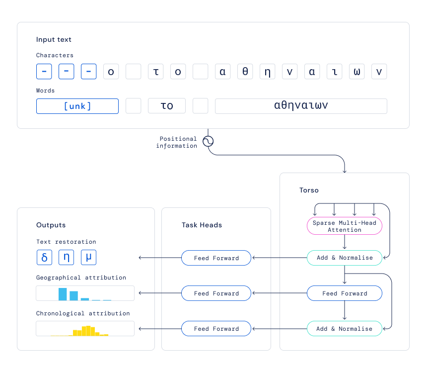 DeepMind与威尼斯大学人文系、牛津大学古典学院和雅典经济大学信息学系合作,探索机器学习如何帮助历史学家更好地解读这些残佚文本,从而让人们更深入地了解古代历史,并释放AI与历史学家之间的合作潜力。