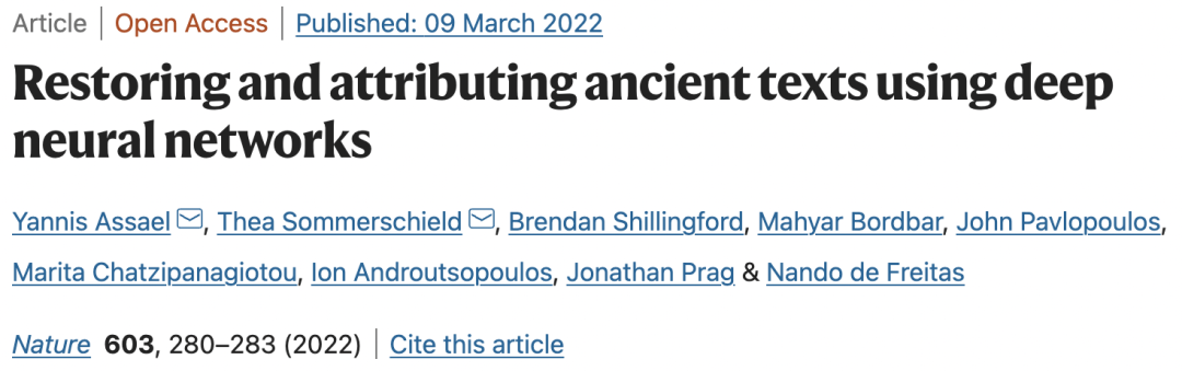 在发表于《自然》杂志上的论文中,这些机构共同推出了名为「伊萨卡」(Ithaca)的AI,这是第一个可以恢复受损铭文缺失文本、识别其原始位置并确定其书写时间的深度神经网络AI。
