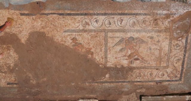 土耳其海边有座建于1世纪古城,名叫安提切塔(Antiochia ad Cragum)。工作人员在此发掘了14年,找到了许多建筑遗迹,但一直没有发现像画面马赛克这种反映当时品味的长久装饰。幸运的是,今年夏天他们终于找到了古城里第一个带故事画面的马赛克,而且场面极其黄暴。早先,工作人员只在城中一处水池附近发现了巨幅几何花纹马赛克。