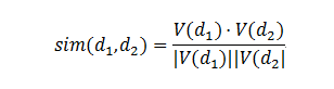 VSM的核心思想是将一篇文档表达为一个向量,向量的每一维可以代表一个词,在此基础上,可以使用向量运算的方法对文档间相似度进行统一计算,而这其中最为核心的计算,就是向量的余弦相似度计算: