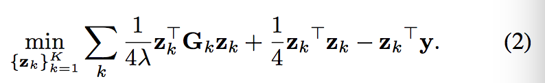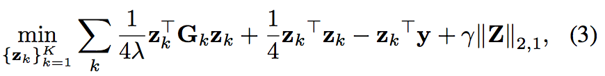 对于Z作者观察到,1.对于每个特征k,只有少数的可能位置xk需要被选出以定位下一帧的目标位置,理想的情况下,下一帧中目标只有一个可能的位置;2.通过K个不同的特征,学习到的zk应该选择相似的循环移位,这样他们才具有相似的运动,所以学习得到的zk应该相似。通过以上的观察,不同的特征应该学习得到相似的zk,使得他们对目标有相同的定位,并且zk应该被联合学习得到。