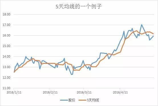 如下图所示,收盘价是蓝线,橙色的线表示5日的移动平均线。