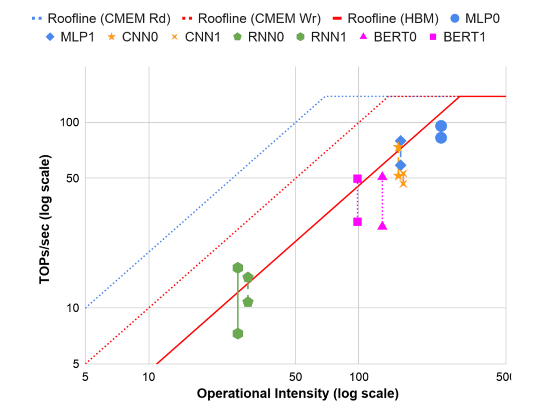 表 3 中的 DNN 约占谷歌 2020 年推理工作负载的 100%。2016 年的 MLP 和 CNN 仍然很受欢迎,尽管一些应用程序从 MLP 切换到 BERT DNN (28%)。BERT 出现于 2018 年,但它已经占了 28% 的工作负载。为了提高质量,transformer编码器加上 LSTM 解码器 (RNN0) 和 Wave RNN (RNN1) 取代了 LSTM (29%)。这个经验说明了可编程性和灵活性对于推理DSA的重要性。