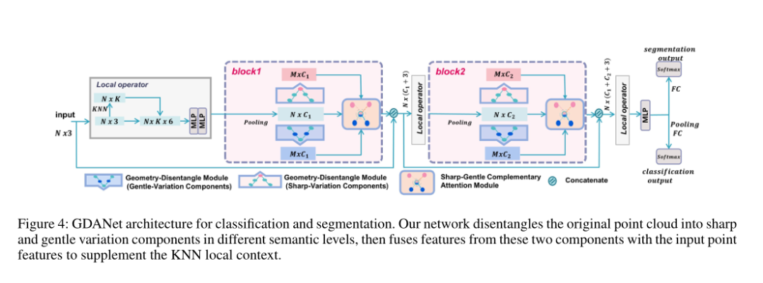 网址:在2D图像处理中,一些尝试将图像分解为高频和低频分量,分别描述边缘和平滑部分。类似地,3D目标的轮廓和平坦区域(例如椅子的边界和座椅区域)描述了不同但互补的几何形状。但是,这样的研究在以前的深层网络中丢失了,这些深层网络通过直接平等地对待所有点或局部面来理解点云。为了解决这个问题,我们提出了几何分离注意力网络(GDANet)。GDANet引入了Geometry-Disentangle模块,可将点云动态分解为3D目标的轮廓和平坦部分,分别由清晰而柔和的变化分量表示。然后,GDANet利用Sharp-Gentle Complementary Attention模块,该模块将锐利和柔和变化成分的特征视为两个整体表示,并在将它们分别与原始点云特征融合时给予了不同的关注。通过这种方式,我们的方法从两个不同的解缠组件中捕获并完善了整体和互补的3D几何语义,以补充局部信息。关于3D目标分类和细分基准的大量实验表明,GDANet使用更少的参数即可实现最新技术。