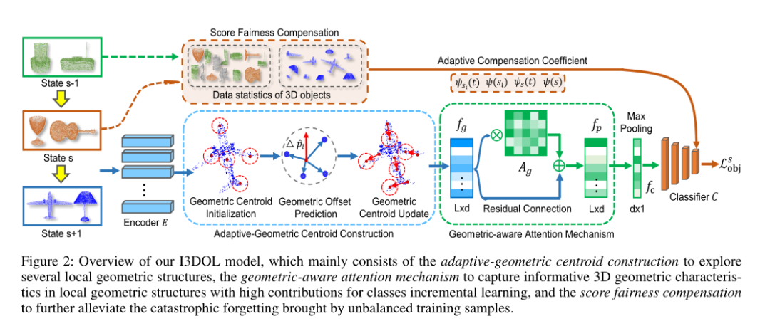 摘要:3D目标分类在学术研究和工业应用中引起了人们的关注。但是,当面对常见的现实场景时,大多数现有方法都需要访问过去3D目标类的训练数据:新的3D目标类按顺序到达。此外,由于3D点云数据的不规则和冗余几何结构,对于过去学习的已知类(即灾难性遗忘),先进方法的性能会大大降低。为了解决这些挑战,我们提出了一种新的增量式3D目标学习(即I3DOL)模型,这是不断学习新类别的3D目标的首次探索。具体来说,自适应几何质心模块被设计用来构造可区分的局部几何结构,从而可以更好地表征3D目标的不规则点云表示。然后,为防止冗余几何信息带来的灾难性遗忘,我们开发了一种几何感知注意力机制来量化局部几何结构的贡献,并探索对类别增量学习具有高贡献的独特3D几何特征。同时,提出了一种分数公平性补偿策略,通过在验证阶段补偿新类的偏向预测,进一步减轻了过去和新类3D目标之间数据不平衡所导致的灾难性遗忘。在3D代表性数据集上进行的实验验证了I3DOL框架的优越性。