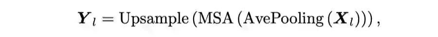 作者使用 vanilla multi-head self-attention 在低频混频器的所有 token 之间传递信息。尽管注意学习全局表示的能力很强,但特征图的分辨率较大会在较低层带来较大的计算开销。因此,需在注意力操作之前使用一个平均池化层来减小
