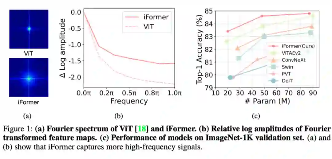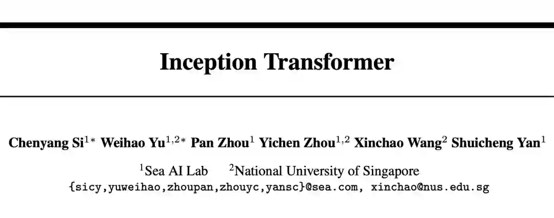 在本文中,作者提出了一种 Inception Transformer(iFormer),这是一种新型的通用 Transformer 主干。iFormer 采用通道分割机制,简单有效地将卷积/最大化池化和自注意力耦合在一起,使其更专注于高频信息,并扩展了 Transformer 在频谱中的感知能力。基于灵活的 Inception token 混频器,作者进一步设计了一种频率斜坡结构,能够在所有层的高频和低频分量之间进行有效的权衡。大量实验表明,iFormer 在图像分类、目标检测和语义分割方面优于典型的视觉 Transformer,显示了 iFormer 作为计算机视觉通用主干的巨大潜力。