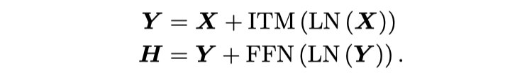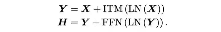 与 vanilla Transformer 一样,本文的 iFormer 配备了前馈网络(FFN),不同的是,它还集成了上述 Inception token mixer(ITM);LayerNorm(LN)被用到了 ITM 和 FFN 之前。因此,Inception Transformer 块表示为: