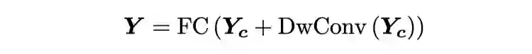 作者设计了一个融合模块,在 patch 之间进行深度卷积交换信息,同时加入一个跨通道线性层,该层在每个位置工作,就像以前的 Transformer 一样。最终输出可表示为: