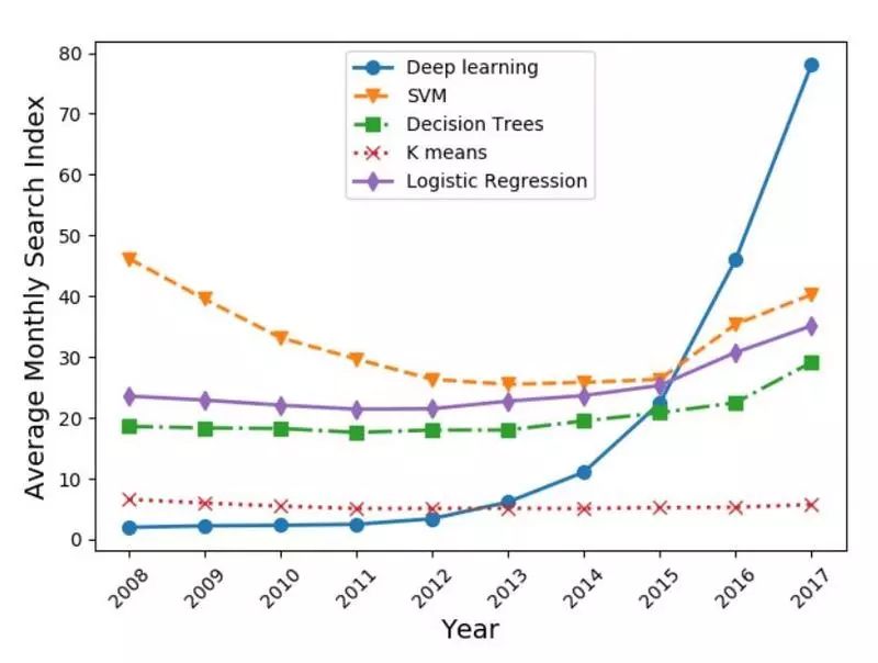 Google Trend 显示近几年对深度学习的关注呈上升趋势。