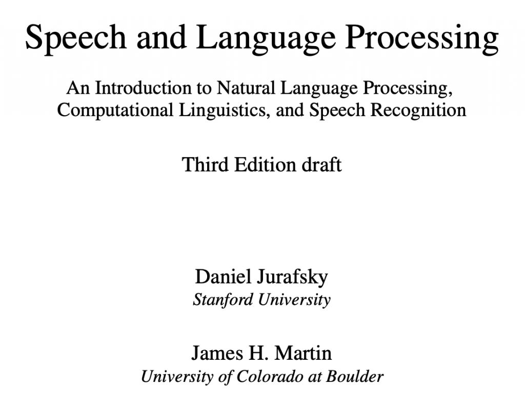 这个假期,推荐一些NLP领域的学习资源,大家可以在家里学习一下经典了。今天推荐的是自然语言处理领域的经典图书《Speech and Language Processing-An Introduction to Natural Language Processing, Computational Linguistics, and Speech Recognition》,中文译名《自然语言处理综论》,目前第三版正在撰写修订中,这本书的作者是NLP领域的大神 Daniel Jurafsky 教授和 James H. Martin 教授,原定2019年年底完工,不过目前还没有完成,但是大部分章节目前已经有草稿了,截止目前发布了一个截止2019年10月23日的单pdf文件,621页,可以在该书官网直接获取:https://web.stanford.edu/~jurafsky/slp3/