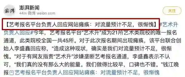今天,艺术升创始人道歉,说他们对流量预计不足,很惭愧。