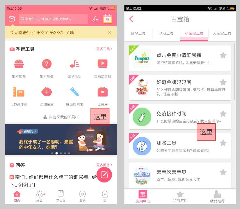 例如下图这些就是不错的入口,宝宝哭的频次远远比打疫苗、起名字这些高,是吧?