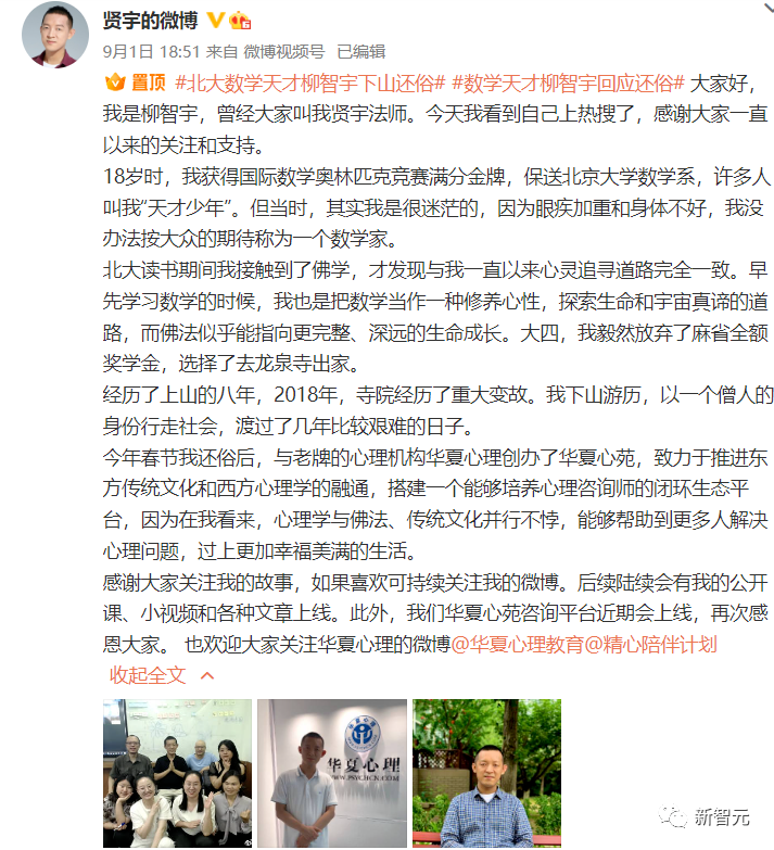 最近,「北大数学天才柳智宇下山还俗」成为热议话题。