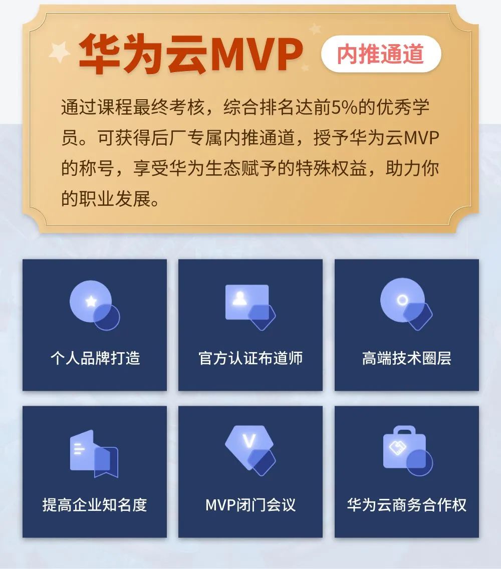 培养方案最终会进行学员排名,优秀学员可获得华为云MVP内推特权和HDG:华为开发者汇线下沙龙交流资格。